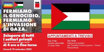 03/09/2025 - FERMIAMO LA BARBARIE - La CGIL trevigiana aderisce, sostiene e partecipa al presidio per il cessate il fuoco in Palestina organizzato dal Comitato contro la guerra