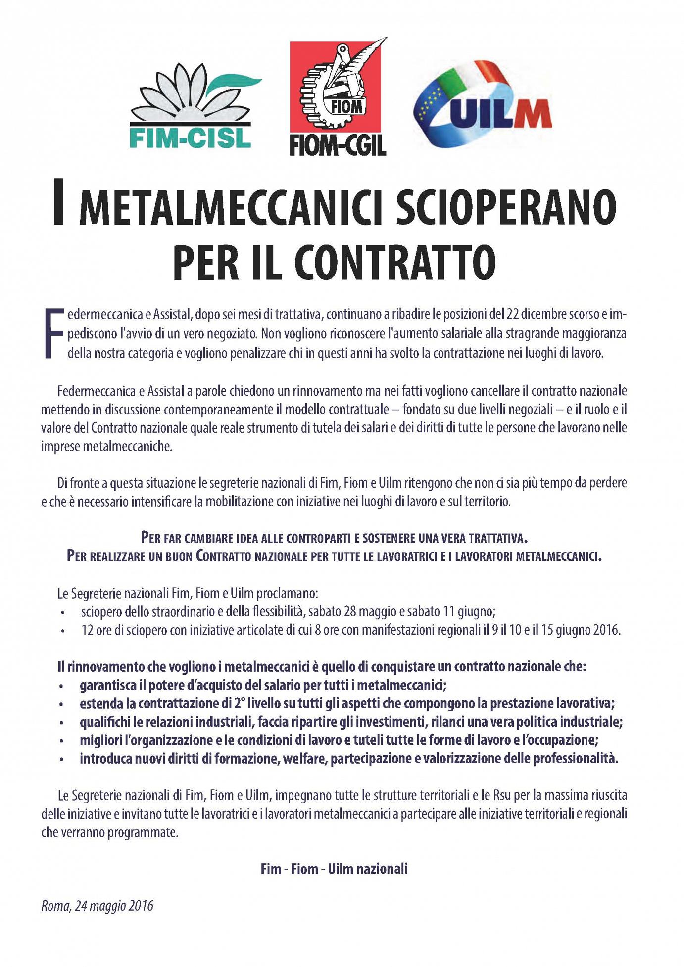 Dopo che nel corso dell’incontro dello scorso 24 maggio con i Sindacati di categoria le parti datoriali hanno di fatto impedito l’avvio di un vero negoziato, le segreterie nazionali di Fiom, Fim e Uilm hanno proclamano lo sciopero dello straordinario e della flessibilità per lo scorso 28 maggio e per sabato 11 giugno e un pacchetto di 12 ore di sciopero, 4 gestite a livello aziendale e 8 ore il 9 giugno, giornata della manifestazione regionale di Vicenza.