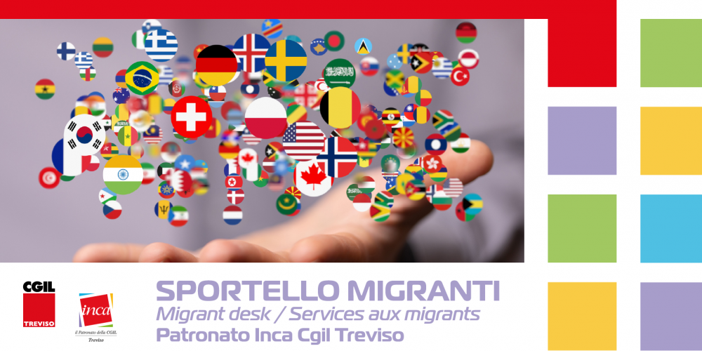 Il Patronato INCA CGIL di Treviso conferma e rafforza i propri servizi dedicati ai cittadini stranieri attraverso lo Sportello Migranti. Un punto di riferimento essenziale per orientarsi tra pratiche burocratiche, permessi di soggiorno e tutele sociali. Contatta la sede più vicina per fissare un appuntamento dal lunedì al venerdì ore 08:30-12:30 / 14:00-18:00. I servizi dello Sportello Migranti sono gratuiti per gli iscritti CGIL.