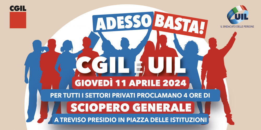 CGIL E UIL PROCLAMANO PER TUTTI I SETTORI PRIVATI 4 ORE DI SCIOPERO GENERALE A FINE TURNO DI LAVORO GIOVEDÌ 11 APRILE