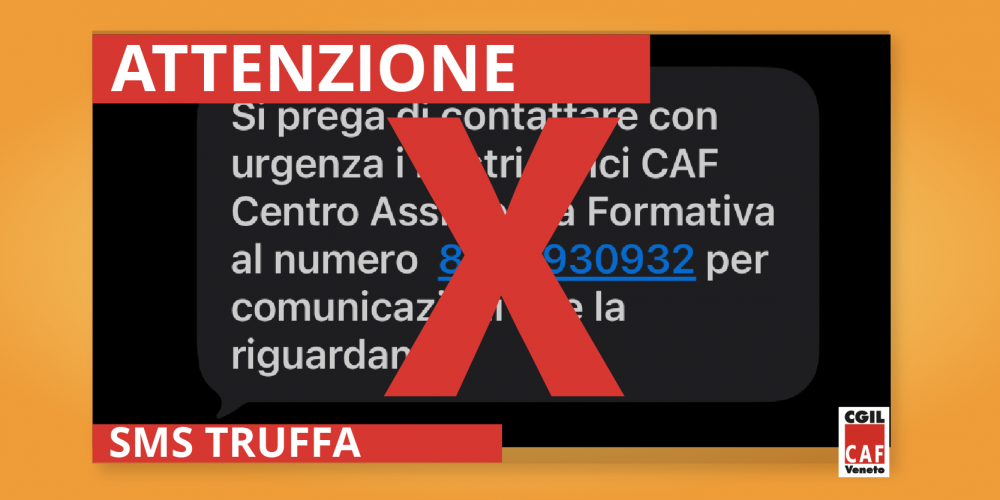 Si invitano pertanto tutti i cittadini e tutti i clienti CAAF CGIL a prestare la massima attenzione, NON RICHIAMARE, IGNORARE L'SMS E BLOCCARE IL MITTENTE. Le sedi CAAF CGIL utilizzano unicamente i propri canali ufficiali per contattare i clienti, i numeri delle sedi o il numero unico 0422 4091. Altre comunicazione via SMS, proveniente da numeri o link non ufficiali, non è attendibile.