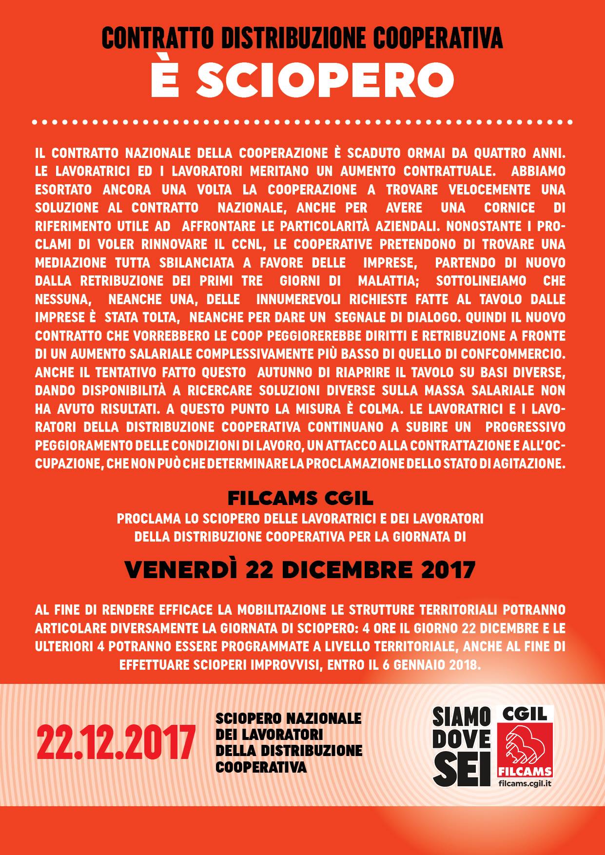 Domani, 22 dicembre, sciopero della GdO e Distribuzione cooperativa