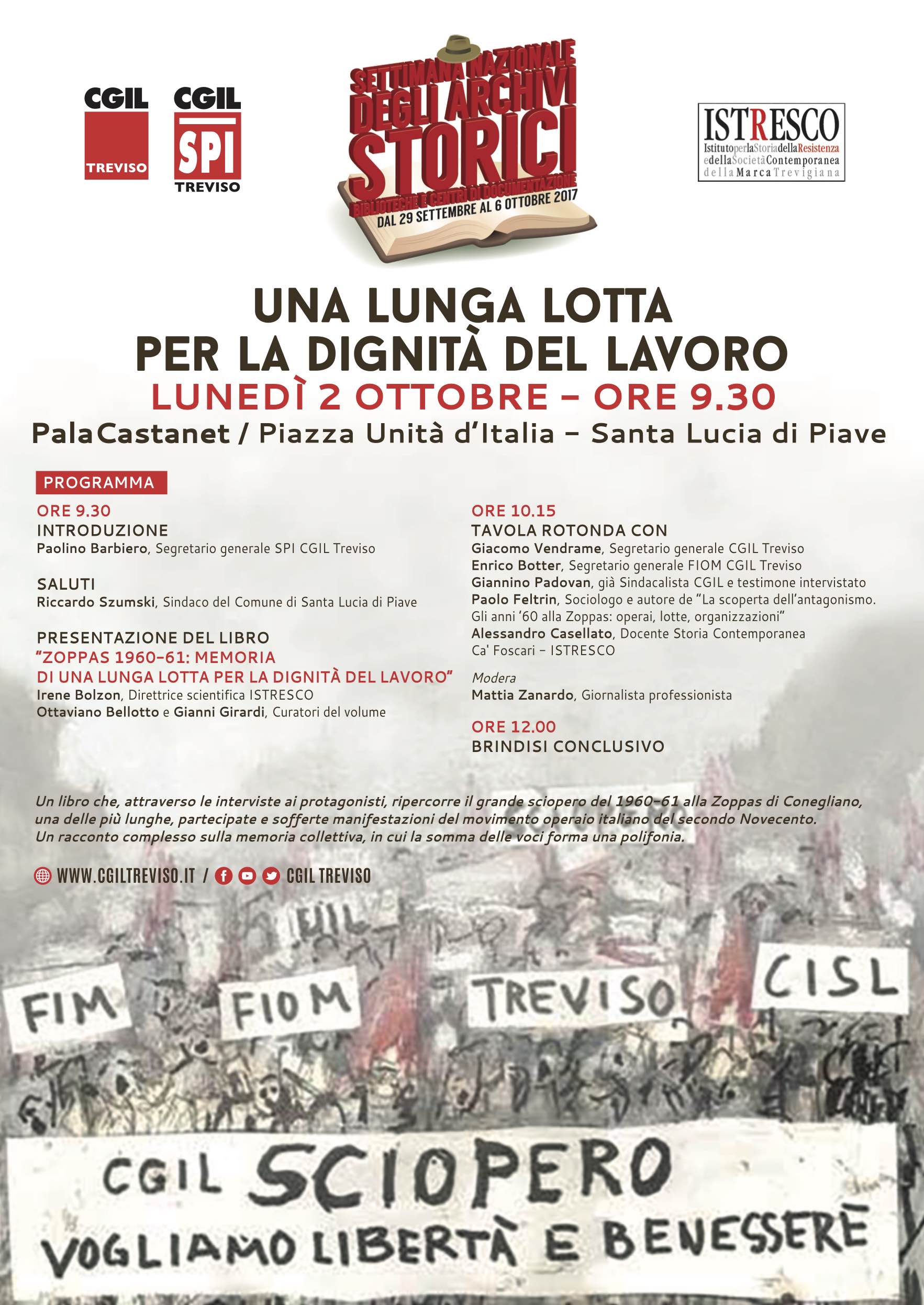 A colmare questo vuoto, oltre mezzo secolo più tardi, sono CGIL e SPI CGIL di Treviso che con la preziosa collaborazione con ISTRESCO (Istituto per la Storia della Resistenza e della Società Contemporanea della Marca Trevigiana) che lunedì 2 ottobre alle ore 9.30 al PalaCastanet di Santa Lucia di Piave, presenteranno il loro nuovo volume “Zoppas 1960-61: memoria di una lunga lotta per la dignità del lavoro”, curato da Gianni Girardi e Ottaviano Bellotto. A loro fianco a introdurre l’opera Paolino Barbiero, segretario generale SPI CGIL di Treviso, e Irene Bolzon, direttrice scientifica ISTRESCO. Porta i saluti Riccardo Szumski, Sindaco di Santa Lucia di Piave. Presente il Vescovo di Vittorio Veneto Corrado Pizziolo.